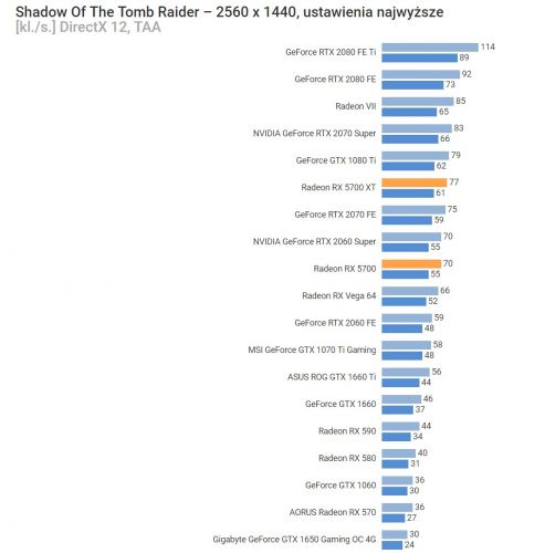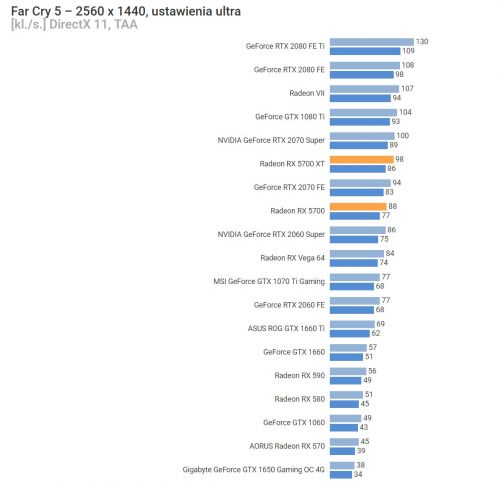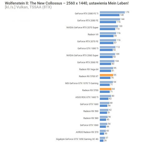 Видеокарты были проверены в Shadow of the Tomb Raider, Far Cry 5 и Wolfenstein II The New Colossus в разрешениях 1920x1080 и 2560x1440. В третьем проекте «красные» значительно уступают «зеленым». Видимо проблема кроется в плохой оптимизации или «сырых» драйверах.
