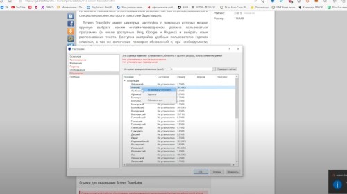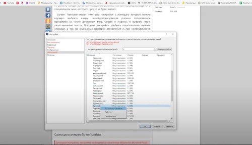 Теперь откройте подвкладку «Перевод», выберите «google.api» и нажмите на «Установить/Обновить». Далее перейдите в подвкладку «Распознавание», а затем снова выберите и установите (обновите) английский и русский языки.