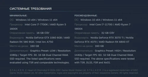 Системные требования S.T.A.L.K.E.R. 2: Heart of Chornobyl