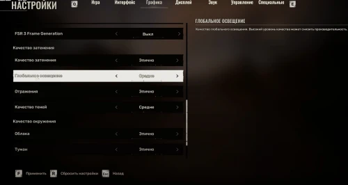 - Глобальное освещение – для большинства ПК рекомендуется выставить значение «Средне» или ниже.