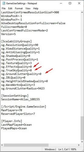 После успешного перехода в WindowsNoEditor откройте файл конфигурации GameUserSettings. Для этого щелкните по нему правой кнопкой мыши и откройте с помощью «Блокнота» (или любого другого текстового редактора).