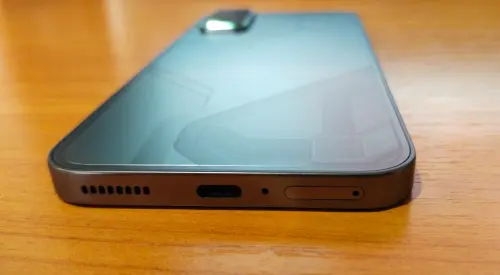 Основной разъем всего один – USB-C, который расположился на нижней грани, где также имеется слот для двух SIM-карточек, один динамик и микрофон. На верхней грани установлен еще один динамик, второй микрофон и ИК-порт. Кнопка питания размещена на правой стороне, а неподалеку установлена качелька громкости. Левая же часть гладкая и пустая.