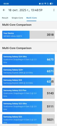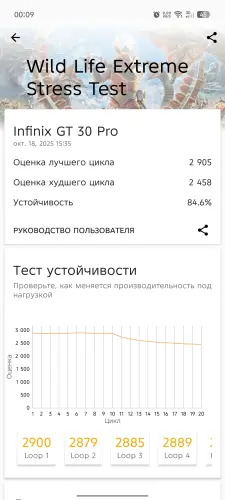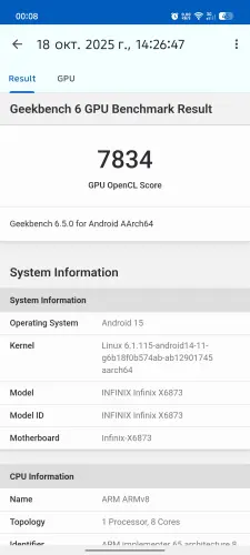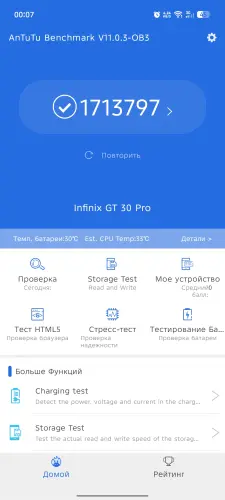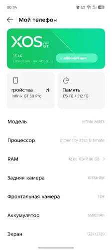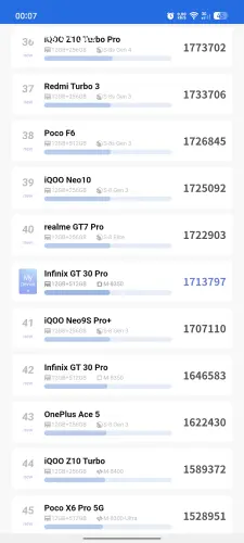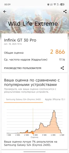 На Infinix GT 30 Pro установлен процессор MediaTek Dimensity 8350 Ultimate, с техническими характеристиками которого можно ознакомиться в начале статьи. Он был выпущен в конце 2024 года, однако начал широко использоваться только в 2025 году, поэтому его можно считать сравнительно новым чипсетом, предназначенным специально для среднебюджетных игровых устройств.