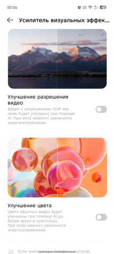 Есть также игровой режим со своими полезными функциями, тоже базирующимися на работе нейросетей, но об этом подробнее мы рассказали в тестах игр. Можно также активировать уличный режим, при котором автоматически повышается яркость экрана, качество подключения к сети и громкость, однако батарея начнет разряжаться заметно быстрее.