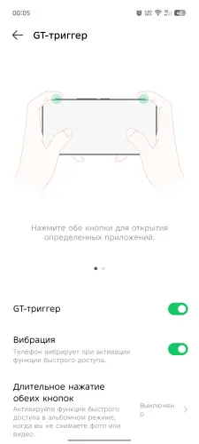 Особое внимание сразу же привлекают два триггера, которые тоже представлены на правой грани, однако речь идет не о физических кнопках, как на геймпадах, а об сенсорных панелях, срабатывающих при касании. Польза от них полностью раскрывается в играх, но они имеют и более утилитарный функционал. Подробнее об этом мы рассказали чуть ниже в соответствующем разделе.