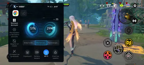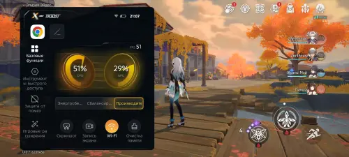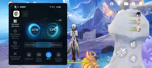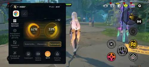 Однако перед реальными игровыми тестами хочется отдельно поговорить об уникальных игровых фишках устройства. Первой из них является программная надстройка под названием XBoost, которую можно вызвать во многих играх путем простого свайпа в левом верхнем углу экрана. Появится небольшое меню, в котором вы сможете менять режимы производительности, смотреть текущую частоту кадров, делать скриншоты или проводить очистку памяти.