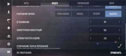 120 кадров в секунду можно увидеть только на низких настройках графики. При этом никаких дропов не возникало – геймплей был максимально плавным. В этой игре можно также активировать «Режим киберспорта», который блокирует все раздражители и оптимизирует игру, повышая производительность.